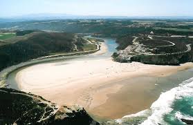 Praia deslumbrante que se estende ao longo de uma baía, último vestígio de um antigo Golfo que se abre ao Oceano através de uma barra, com cerca de 250 metros de largura entre os morros de Santana a Sul e do Farol a Norte de uma grandiosidade impressionante.
